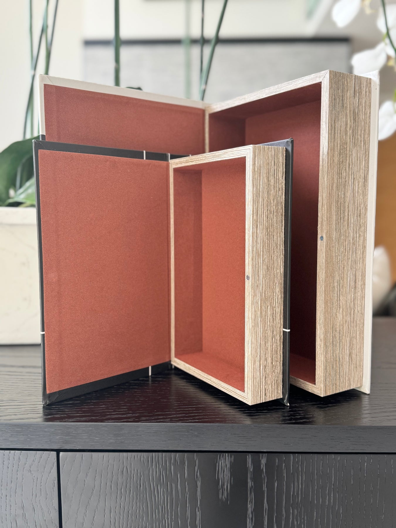 Large Box: Height: 33cm Width: 22cm Depth: 7cmSmall Box: Height: 26.5cm Width: 17cm Depth: 5cm