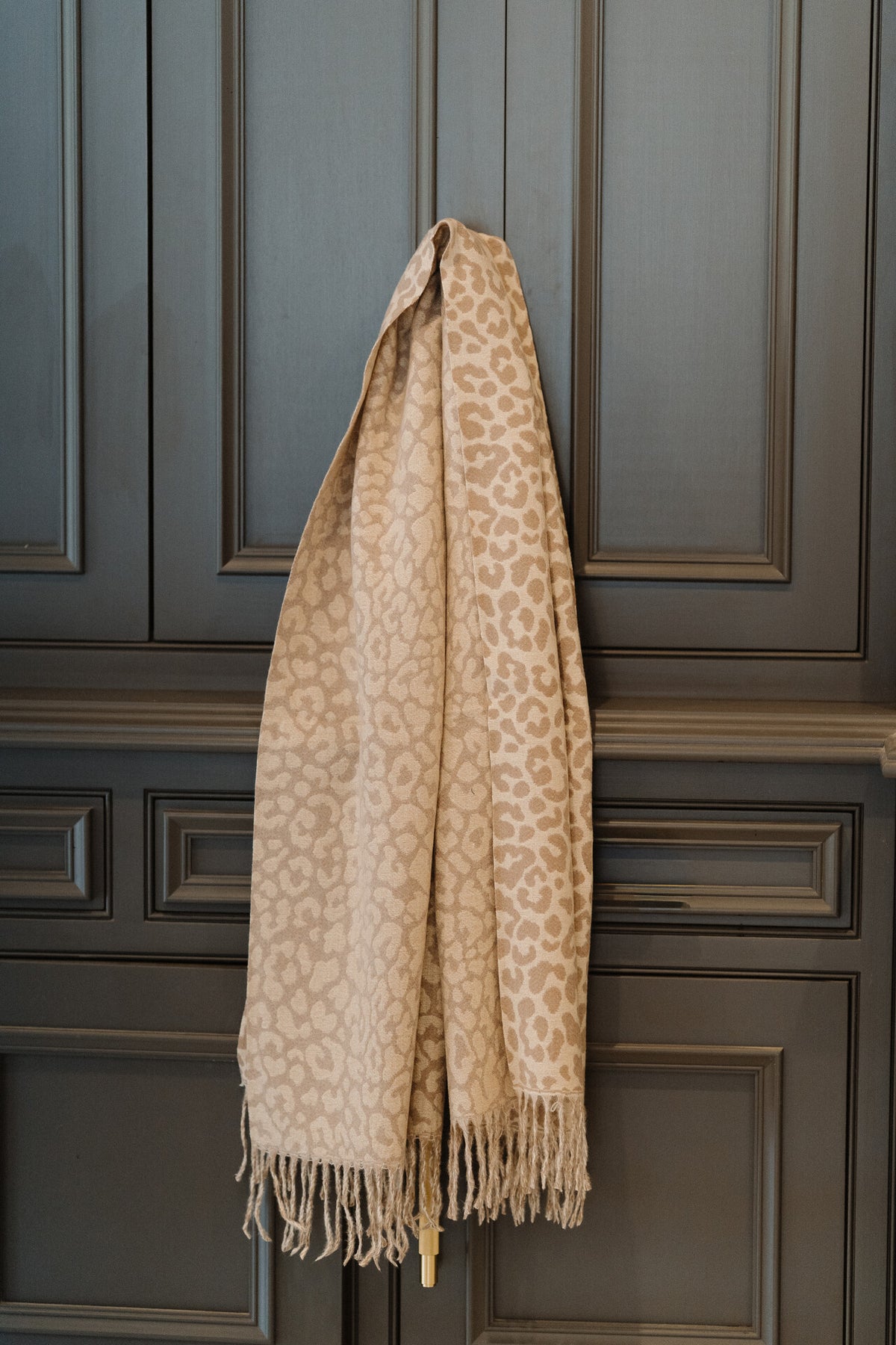 Add a touch of chic sophistication to your wardrobe with this timeless leopard print scarf. Crafted from a luxurious blend of 30% cashmere and 70% acrylic, it offers both warmth and softness while remaining lightweight and easy to style.
