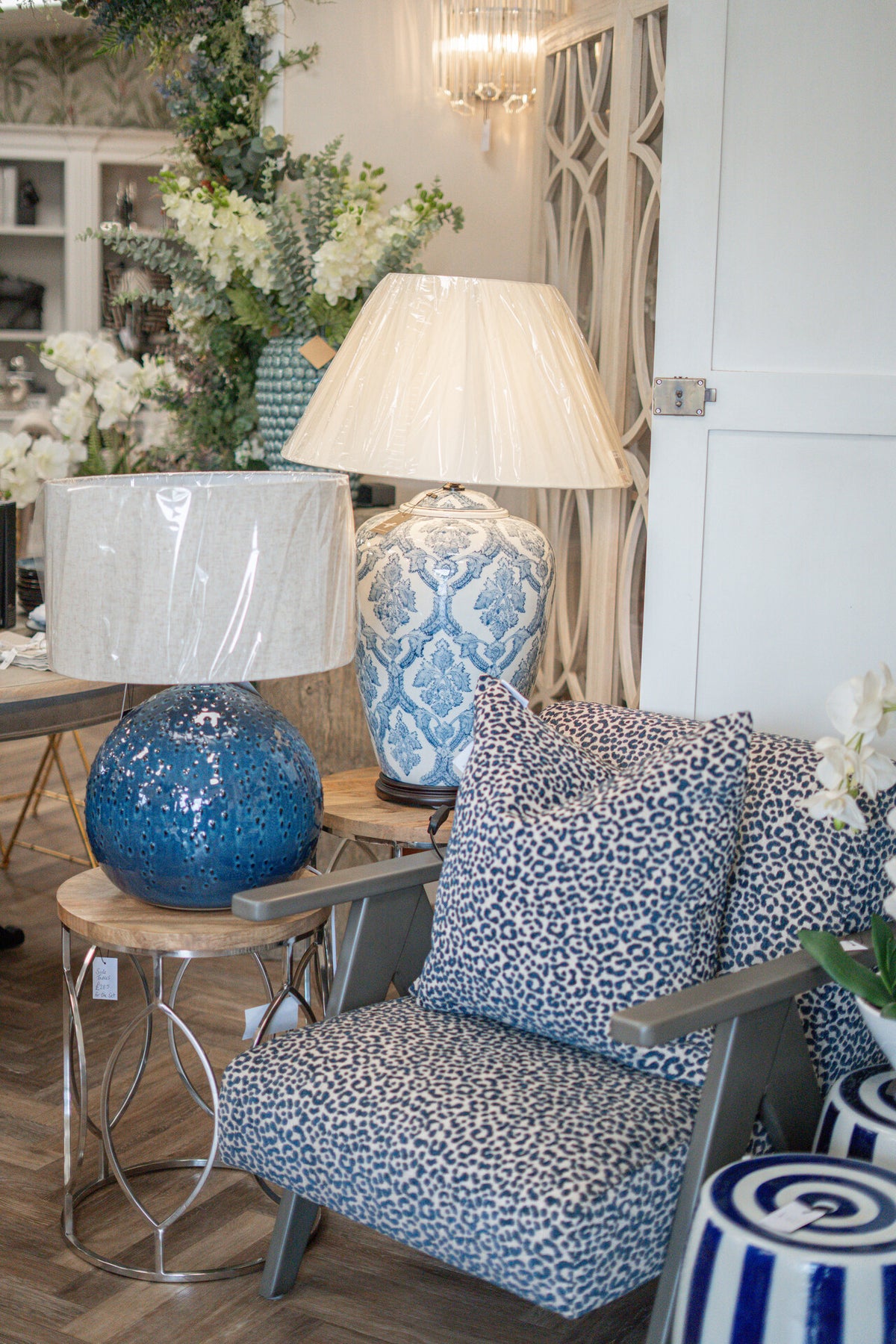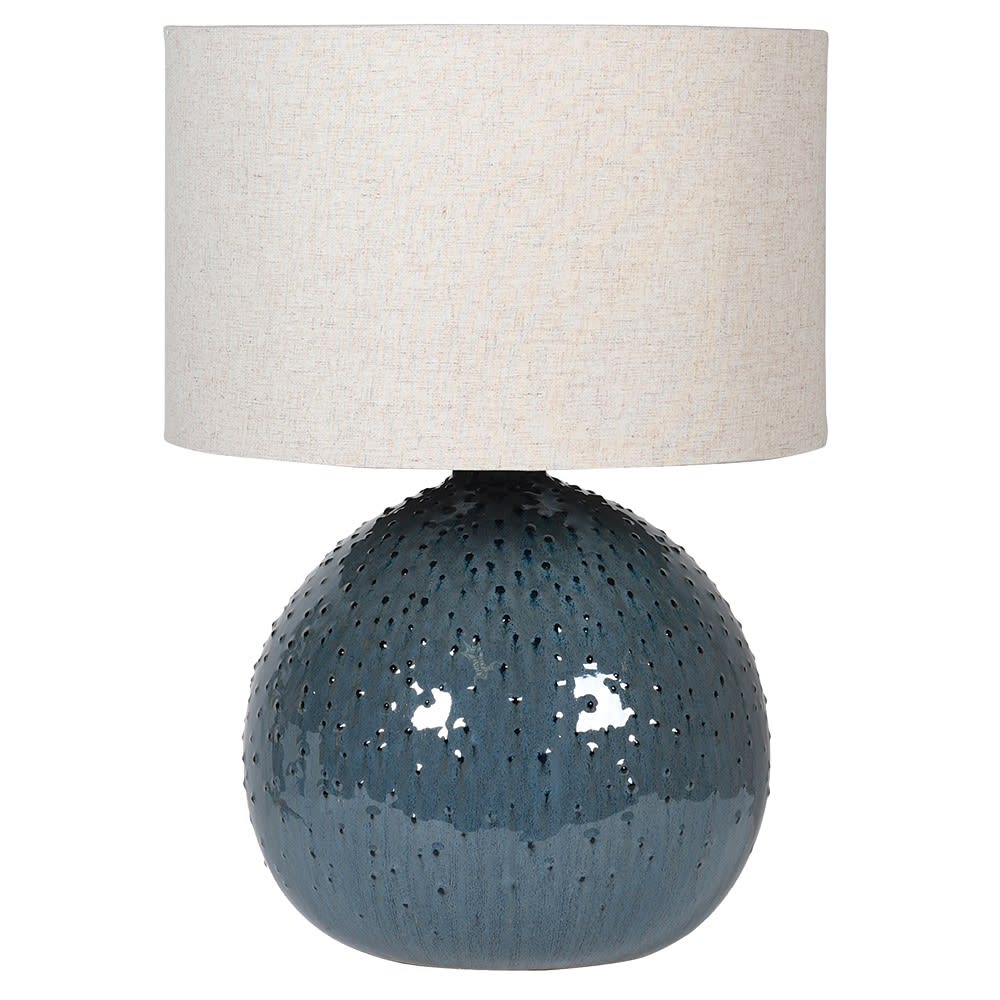Blue Dot Ceramic Table Lamp with Linen Shade