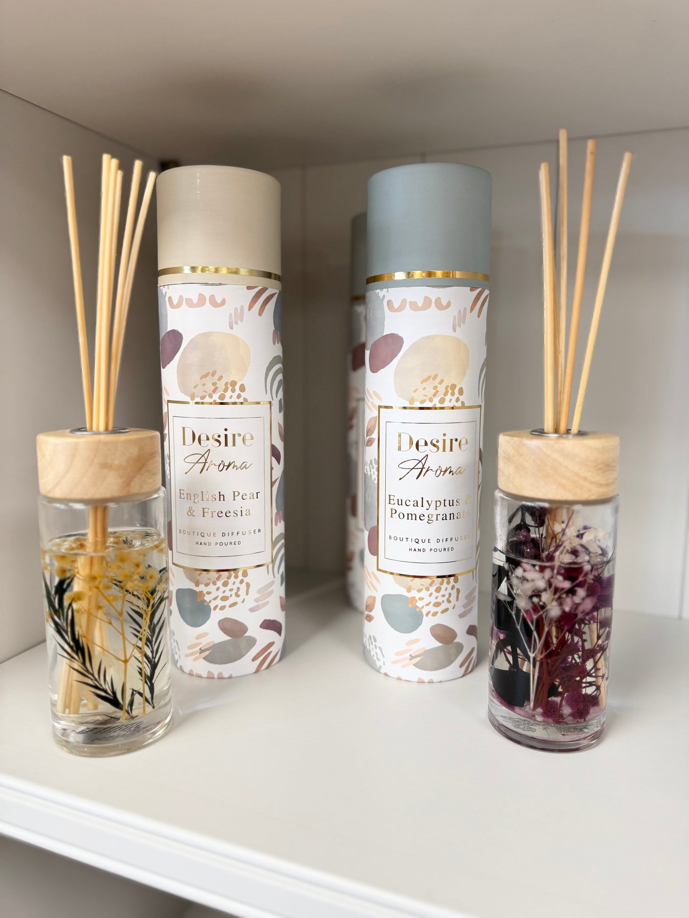 Indulge in the enticing scent of English pears and freesias with our luxurious diffuser, adding a touch of elegance to your home.